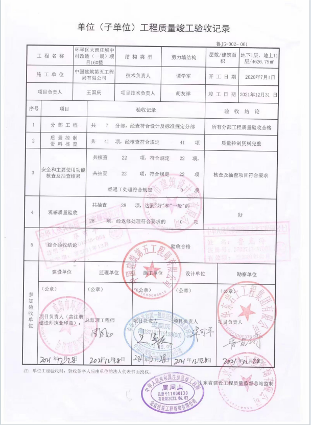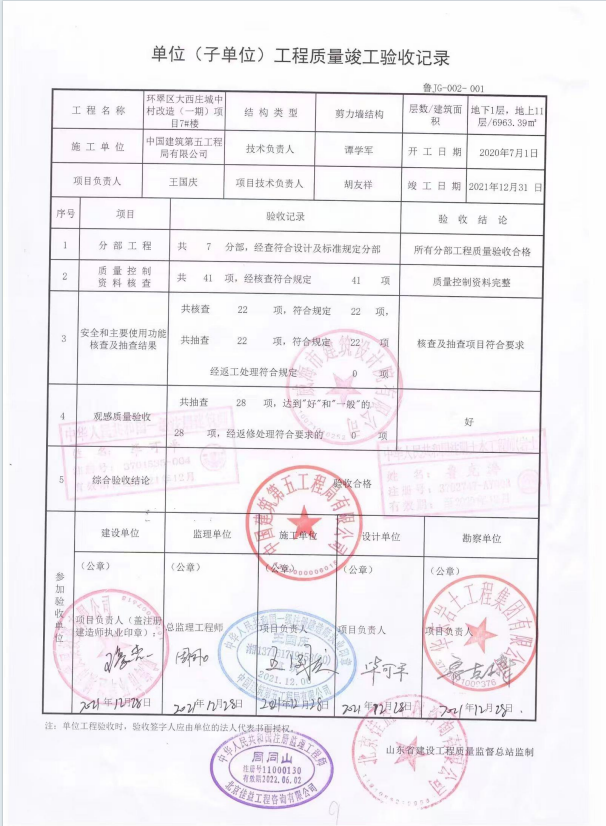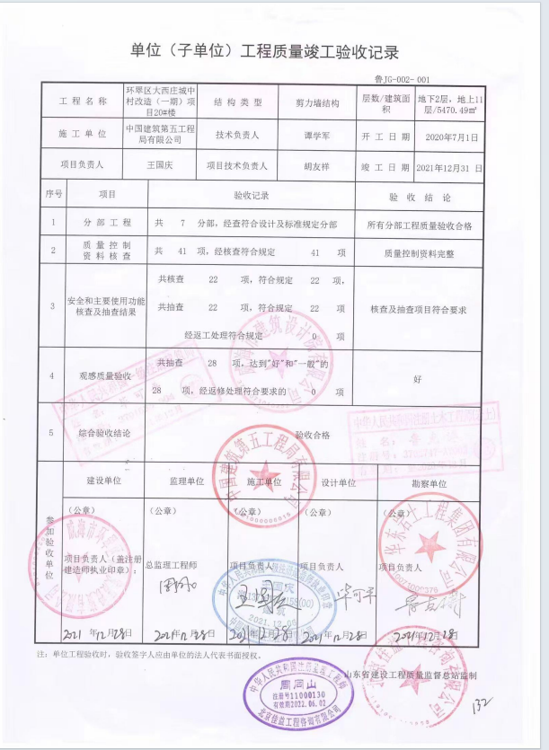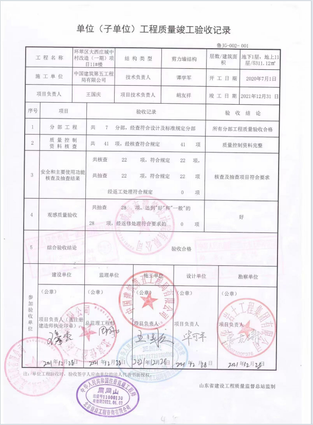 大西庄一期主体验收报告