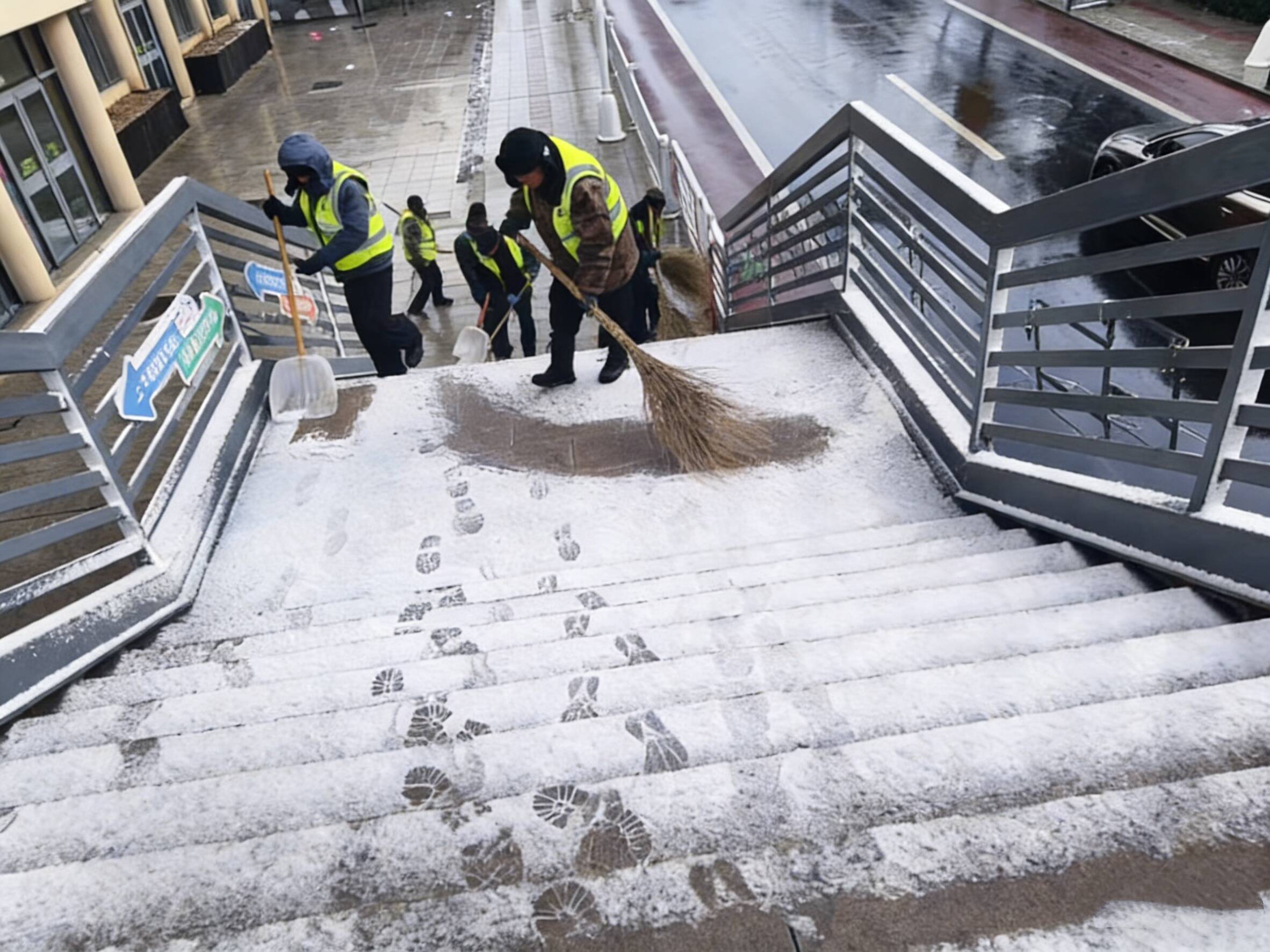 降雪伊始,环翠园林公司和通达市政公司迅速集结作业队伍,全面开展清雪防滑作业。坚持“机械为主、人工为辅”的科学作业模式,组建多支机械作业梯队,沿着城区主次干道开展巡回清扫作业。针对背阳区、高架匝道等易结冰重点路段,精准施策,采取“先融后扫、反复巡查”的作业方式,实时监控路面状况。同时,针对天桥区域、公交站点等机械作业难以覆盖的关键点位,作业人员手持清雪工具,对步道积雪进行“地毯式”清扫,不留死角、不漏盲区,切实保障市民步行出行安全。