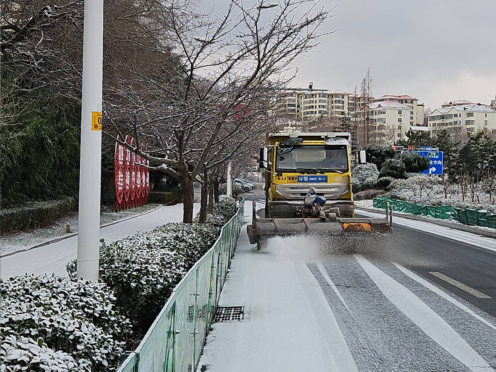 截至目前,环翠园林公司和通达市政公司累计出动专业清雪队伍80余人次,投入撒布车、清雪铲、清雪滚刷及巡查指挥车辆等各类作业设备70余台,对辖区海滨路至黄岛路段(包含育华路、北山路、四方路、金线顶路、海滨路、刘公岛周边),世昌大道以南至平度路段(包含青岛路、统一路、塔山中路、崂山路、统一南路、环山路)等主次干道共计约155.5万平方米区域开展全天不间断清雪作业,有效保障了城市交通路网畅通有序。