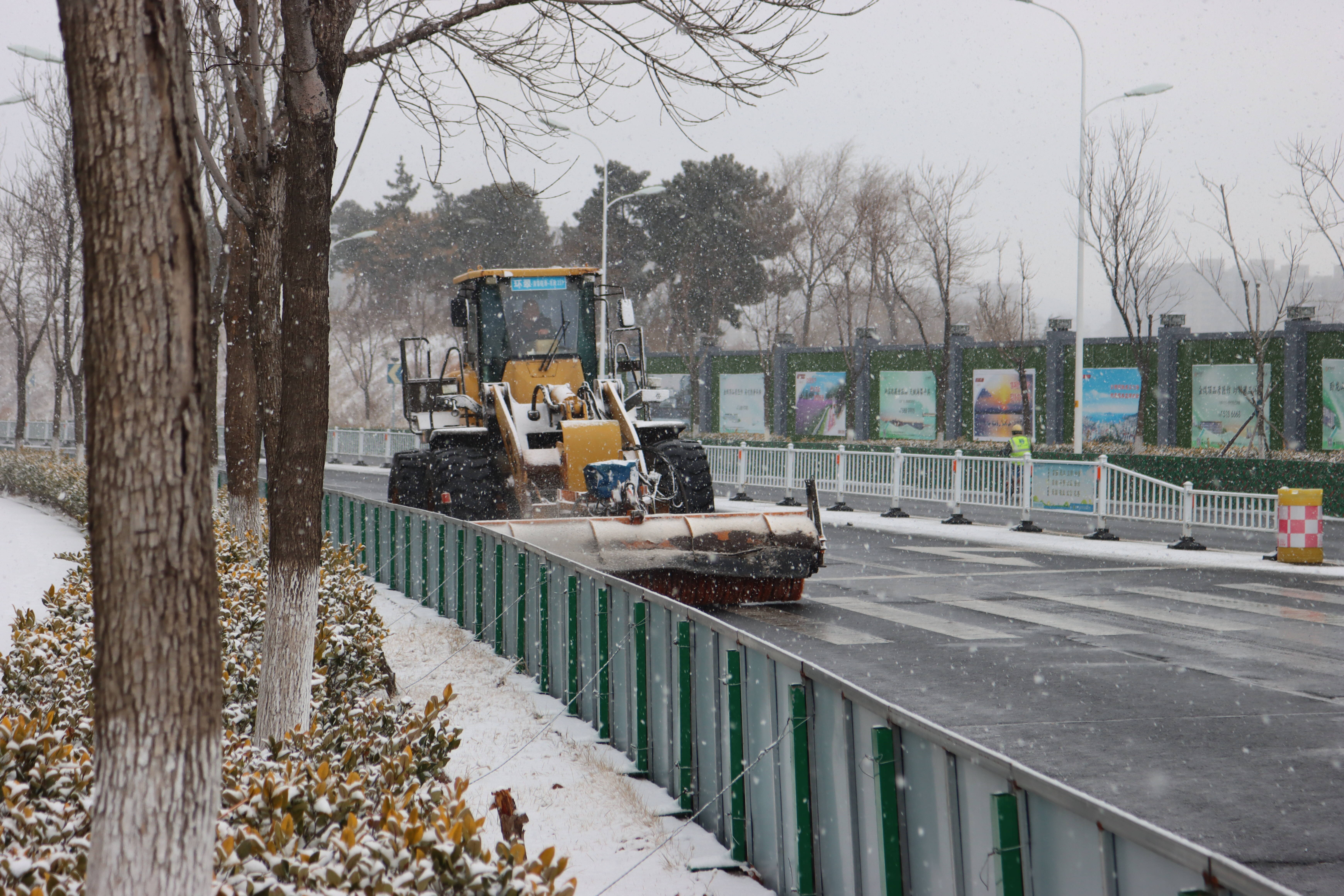 为应对持续降雪的严峻考验,环翠园林公司和通达市政公司实行“24小时值守+动态调度”机制,秉持“人歇机不歇、雪不停人不撤”的硬核原则,将作业时间延伸至凌晨时段,确保降雪过程中清雪作业不间断。